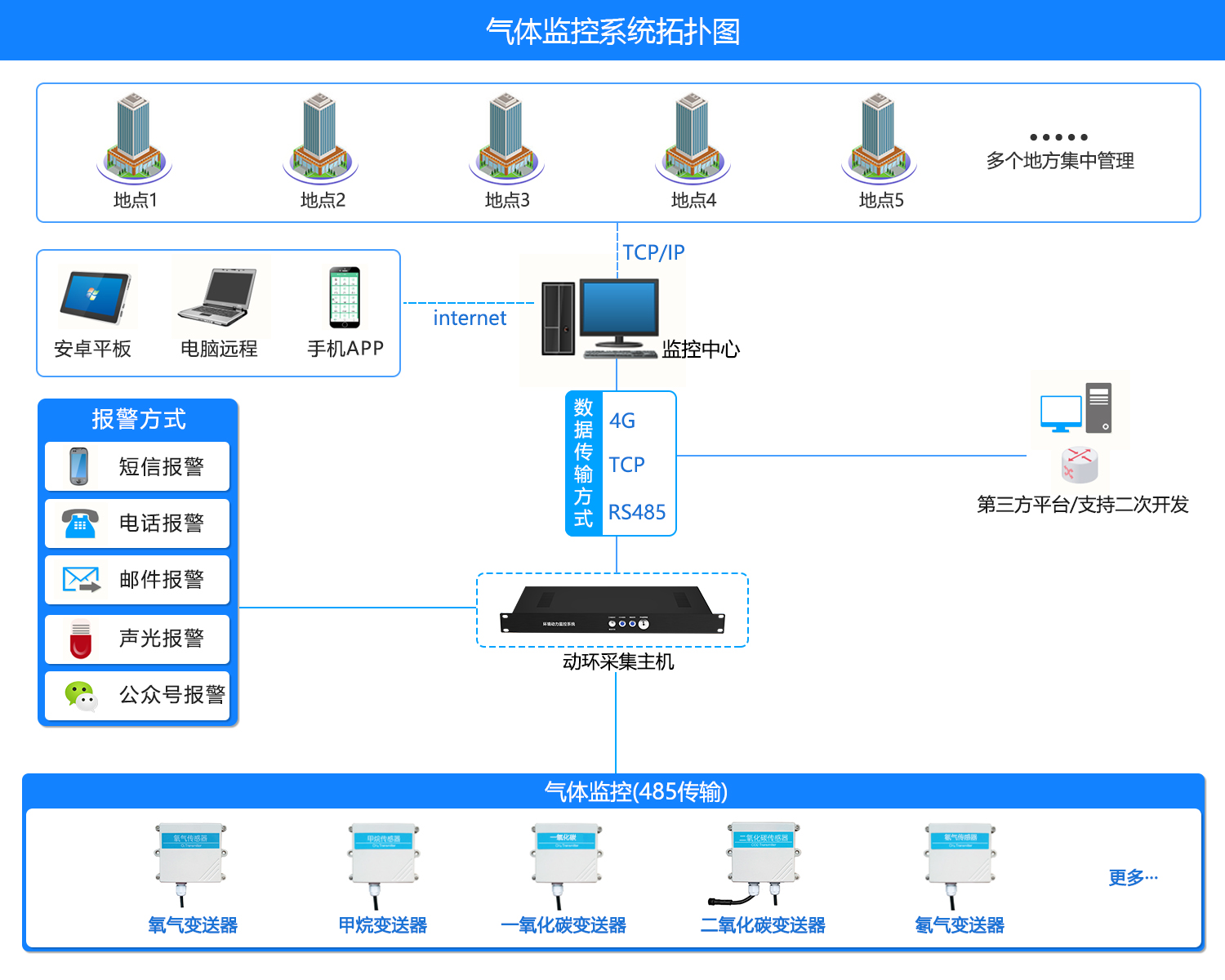 一氧化碳CO氣體監(jiān)控系統(tǒng)將會探測到CO氣體濃度傳輸?shù)较到y(tǒng)上,一旦CO濃度達(dá)到設(shè)備上限報警值,監(jiān)控系統(tǒng)就會發(fā)出聲光、短信、電話、APP等報警,第一時間聯(lián)系告知相關(guān)人員,并輸出上限報警信號以啟動排風(fēng)扇等有效的措施,降低現(xiàn)場的CO氣體濃度。
